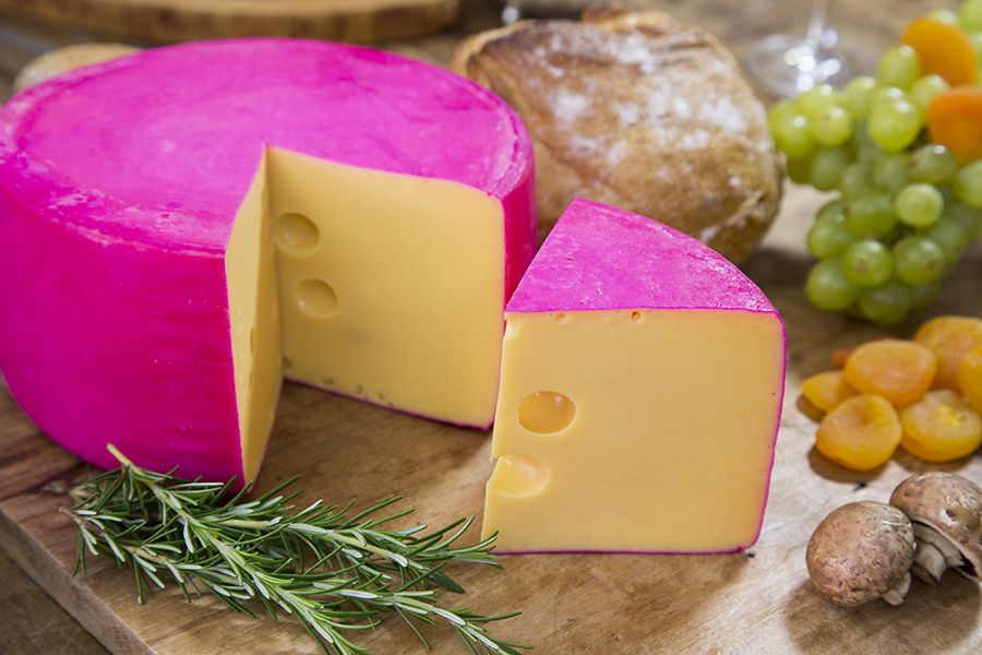 Queijo Com Coloraçao avermelhada por fora e amarela escura por dentro Lembra um pouco o queijo prato o gigante nas mesas chama muito a atençao pela beleza!!